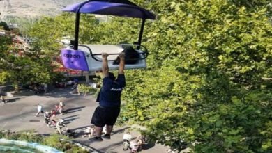 خلیج اردو آن لائن: امریکہ کے یوٹاہ کے تھیم پارک میں ایک شخص چیئر لفٹ کا سیٹ بیلٹ اتار…