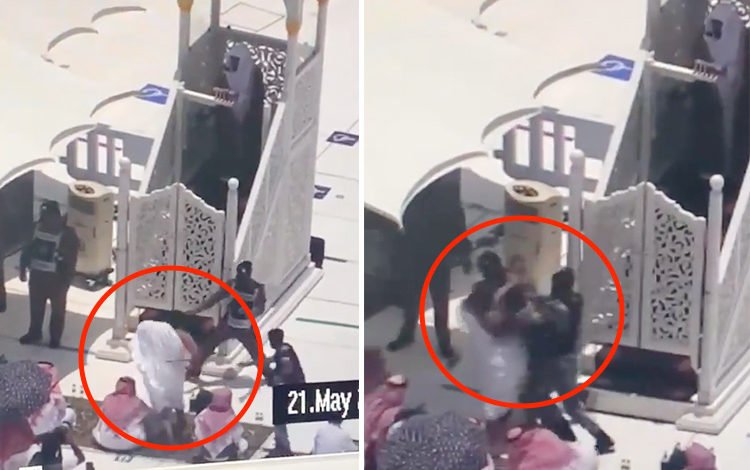 ویڈیو میں دیکھا جا سکتا ہے کہ احرام پہنے اور ایک ہاتھ میں چھڑی لیے ایک شخص بھاگتا ہوا ممبر کی طرف آتا اور ممبر میں داخل ہونے پہلے ہی سیکیورٹی اہلکار اسے پکڑ لیتے ہیں۔
