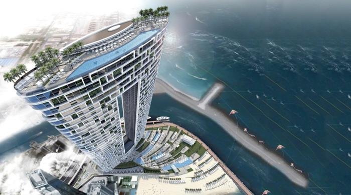 خلیج اردو: دبئی کے معروف علاقے دبئی مرینہ میں واقعہ ایڈریس بیچ ریزورٹ کی بلند عمارت پر واقعہ اس سوئمنگ پول سے آسمان پر تیراکی کا گمان ہوتا ہے، یہاں سے سمندر اور آسمان کا نظارہ کرنے کے ساتھ تیراکی کا لطف بھی لیا جاسکتا ہے۔