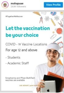 انہوں نے مزید کہا کہ پالیسی کی ہدایت متحدہ عرب امارات کی طرف سے جاری وصولی کے منصوبے کے مطابق ہے ، جس کا مقصد 2021 کے آخر تک 100 فیصد اہل ہدف گروپوں کو ویکسین لگانا ہے۔