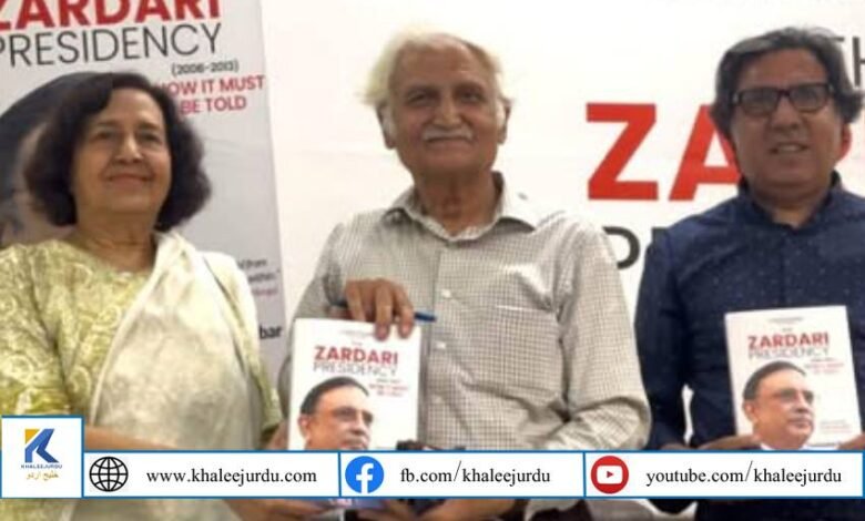 کراچی: پاکستان پیپلز پارٹی کے سینئر رہنما اور سابق صدر کے ترجمان فرحت اللہ بابر کی تصنیف ’دی زرداری پریزیڈنسی‘ کی تقریبِ رونمائی کراچی پریس کلب میں منعقد ہوئی، جہاں ممتاز دانشوروں، سیاسی رہنماؤں اور صحافیوں نے شرکت کی۔ تقریب میں کتاب کے سیاسی، تاریخی اور فکری پہلوؤں پر سیرحاصل گفتگو کی گئی۔