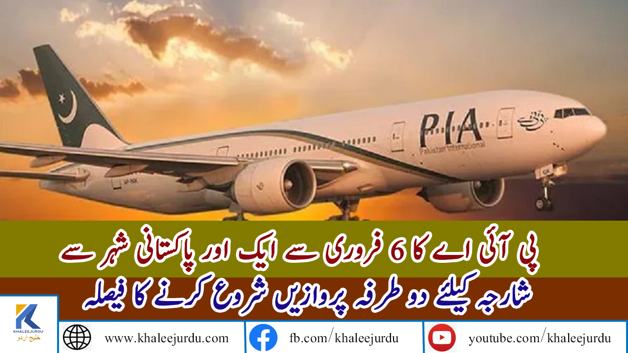 پی آئی اے اگلے ماہ 6 فروری سے تربت اور شارجہ کے درمیان پروازوں کا باقاعدہ آغاز کر دے گی۔ قومی ائیرلائن دونوں شہروں کے درمیان دو طرفہ پروازیں چلائے گی۔ تربت شارجہ کے روٹ پر پروازیں شروع کرنے سے بلوچستان کے شہریوں کیلئے متحدہ عرب امارات اور پاکستان کے درمیان سفری مشکلات کم ہوں گی۔