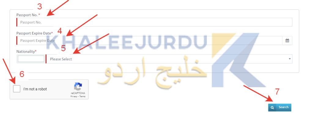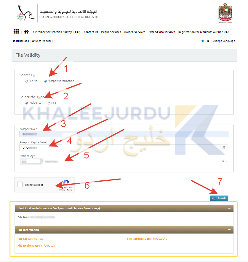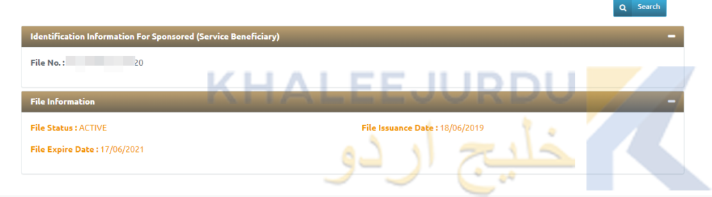 5۔ سرچ بٹن پر کلک کرنے کے بعد پیچ ری فریش ہوگا اور آپ کو آپ کے ویزا یا ریزیڈنسی کی معلومات فراہم کر دی جائے گی۔
