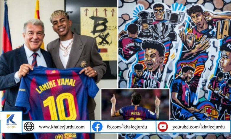 بارسلونا: اسپین کے مشہور فٹبال کلب ایف سی بارسلونا نے نوجوان اسٹار لامین یامال کو ٹیم کی لیجنڈری نمبر 10 کی شرٹ الاٹ کر دی ہے، جو ماضی میں لیونل میسی، رونالڈینیو اور ڈیوگو میراڈونا جیسے عظیم کھلاڑیوں کا انتخاب رہی ہے۔