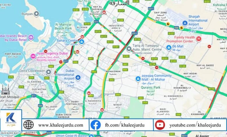 شارجہ اور دبئی کے درمیان سفر کرنے والے موٹر سواروں کو پیر کے روز کئی اہم سڑکوں پر طویل تاخیر کا سامنا ہے، جہاں گوگل میپس کی لائیو اپڈیٹس کے مطابق ٹریفک شدید جام میں ہے۔