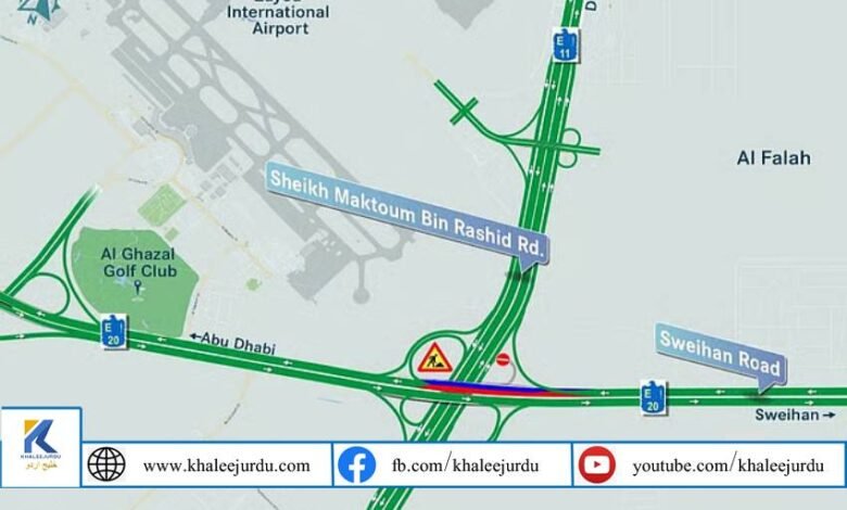 اتوار کو صبح 12 بجے سے سہ پہر 3 بجے تک دائیں لین اور ابوظبی کی طرف جانے والا ریمپ بند کیا جائے گا۔