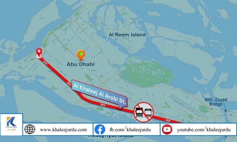 ابوظہبی: ابوظہبی حکام نے الجلیج العربی اسٹریٹ پر اس ہفتے کے آخر میں بھاری گاڑیوں اور مزدور بسوں پر عارضی پابندی کا اعلان کیا ہے، تاکہ دارالحکومت کی اہم شاہراہوں پر ٹریفک کے بہاؤ کو بہتر بنایا جا سکے اور سڑکوں کی حفاظت کو یقینی بنایا جا سکے۔