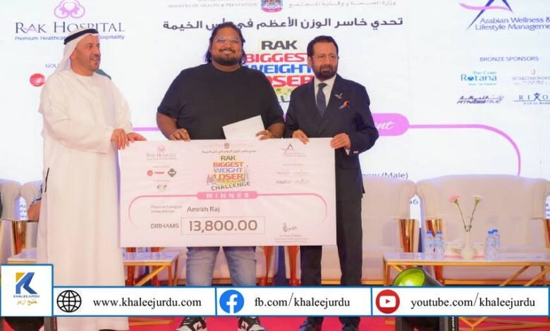 راس الخیمہ: 22 مئی — راس الخیمہ ویٹ لاس چیلنج 2025 کے مجموعی فاتح کے طور پر بدھ کے روز دبئی کے 31 سالہ رہائشی امرتھ راج کو اعزاز دیا گیا، جنہوں نے 45.7 کلو وزن کم کر کے 13,800 درہم انعام حاصل کیا۔ دوسری جانب خواتین کی کیٹیگری میں پاکستانی نژاد دبئی کی رہائشی اسپینا غطائی محمد یعقوب نے 25 کلو وزن کم کر کے پہلی پوزیشن حاصل کی۔
