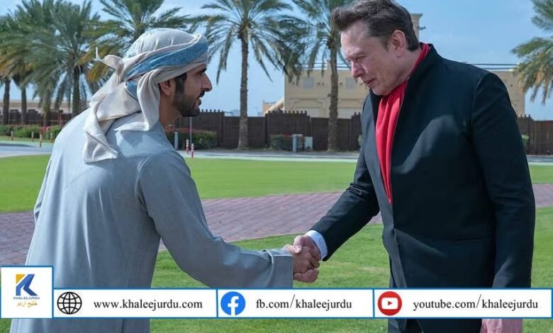 دبئی کے ولی عہد شیخ حمدان بن محمد بن راشد آل مکتوم نے ٹیکنالوجی کے معروف کاروباری رہنما، ایکس کے مالک اور ٹیسلا کے سی ای او ایلون مسک سے ند الشبا میں اپنے مجلس میں ملاقات کی۔ شیخ حمدان نے سوشل میڈیا پر ملاقات کی چند غیر رسمی تصاویر بھی شیئر کیں، جن میں ایک تصویر میں شیخ حمدان خود گاڑی چلاتے ہوئے نظر آئے جبکہ ایلون مسک ان کے ساتھ مسافر کی نشست پر موجود تھے۔