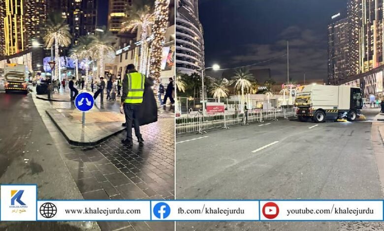 سوشل میڈیا پر شہریوں کی جانب سے شیئر کی گئی ویڈیوز میں دیکھا گیا کہ جشن کے دوران ہی صفائی کا عمل جاری تھا، جہاں یونیفارم میں ملبوس عملہ سڑکوں پر جھاڑو دیتا اور کچرا جمع کرتا نظر آیا۔ دبئی میونسپلٹی کی جانب سے جاری کی گئی تصاویر میں اس بڑے آپریشن کی وسعت نمایاں دکھائی دی۔