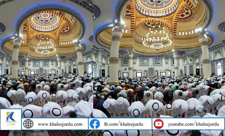 متحدہ عرب امارات میں عید الفطر کی پہلی روشنی کے ساتھ خاندان اپنے بہترین لباس میں مساجد کی جانب روانہ ہوئے، نماز اور سکون کے لمحات میں شریک ہوئے۔