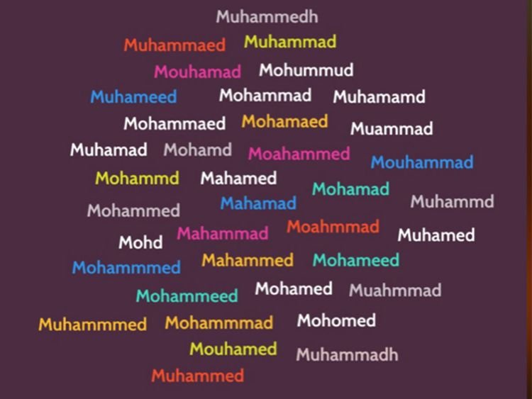 دبئی کے پرائیویٹ سکولوں میں پڑھنے والے بچوں میں سے 14947 کے ناموں میں محمد آتا ہے۔ تاہم یہ 37 مختلف طریقوں سے اپنے ناموں کی اسپلنگ کرتے ہیں۔ اس حوالے سے دبئی کے KHDA نے ایک ٹویٹ میں پوچھا کہ کیا آُ اندازہ لگا سکتے ہیں کہ ان میں ٹاپ 3 وہ کون سے اسپیلنگ ہیں جو محمد کے کیے جاتے ہیں ؟ پوچھے گئے سوال کا جواب اگلے دن دیا گیا اور بتایا گیا کہ ان میں سے تین جن کی تعداد زیادہ ہے ان میں 4153 کی اسپیلنگ Muhammed ، 3704 کے ناموں کی اپیلنگ Mohmmed , 3435 کے نام کی اسپیلنگ Mohammad ہے۔ اس کے بعد چوتھے نمبر پر Mohamed ہے جس کی تعداد 2142 ہے۔