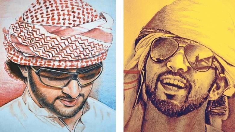 سوگار ایس پریادرشی نے ان کے 38 پورٹریٹس کو ملا کر 42 فٹ لمبا اور 1.25 فٹ چوڑا پورٹریٹ بنایا ہے اور انہیں امید ہے کہ وہ اسے شیخ حمدان کو تحفے میں دے گا۔