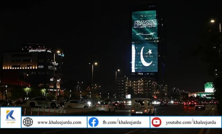 دبئی: سعودی شہروں کے اسکائی لائنز کو سعودی عرب اور پاکستان کے جھنڈوں سے روشن کیا گیا تاکہ نئے اسٹریٹجک مشترکہ دفاعی معاہدے کے دستخط کا جشن منایا جا سکے۔