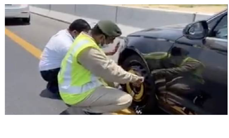 دبئی پولیس اہلکار نے گاڑی کا ٹائر تبدیل کرنے میں رہائشی کی مدد کر کے لوگوں کے دل جیت لیے۔