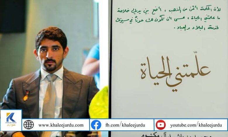 دبئی: دبئی کے ولی عہد شیخ حمدان بن محمد بن راشد المکتوم کو ان کے والد، متحدہ عرب امارات کے نائب صدر، وزیر اعظم اور دبئی کے حکمران شیخ محمد بن راشد المکتوم کی نئی کتاب ’’الحياة علمتني‘‘ (زندگی نے مجھے سکھایا) کا دستخط شدہ نسخہ پیش کیا گیا۔
