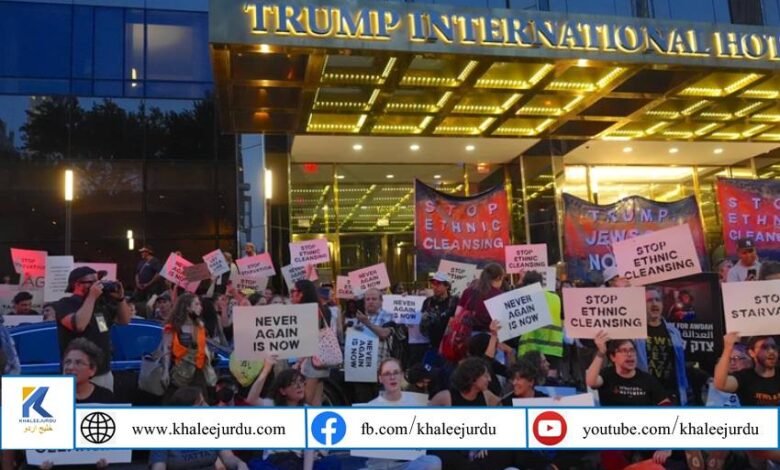 نیویارک: امریکہ کے شہر نیویارک میں سابق صدر ڈونلڈ ٹرمپ کے ہوٹل کے باہر یہودیوں نے فلسطینی عوام کے حق میں احتجاج کیا۔ مظاہرین نے "غزہ کو زندہ رہنے دو” کے نعروں کے ساتھ فلسطینیوں کے انسانی حقوق کے تحفظ کا مطالبہ کیا اور عالمی برادری سے اسرائیلی مظالم کے خلاف آواز اٹھانے کی اپیل کی۔