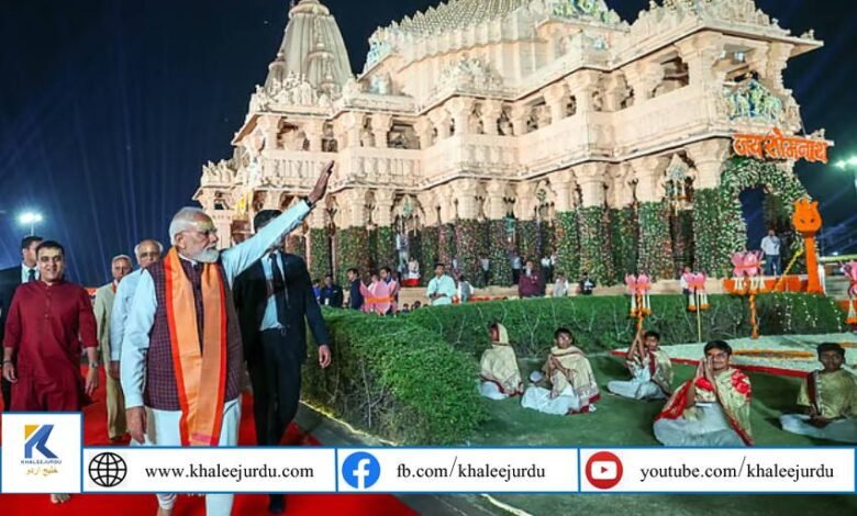 مودی نے مزید کہا: "جو لوگ سومنات کو تباہ کرنے آئے وہ تاریخ کے صفحات میں محدود ہو گئے ہیں، لیکن سومنات مندر آج بھی بلند و بالا کھڑا ہے اور دھرم کے پرچم کو بلند کیے ہوئے ہے۔”