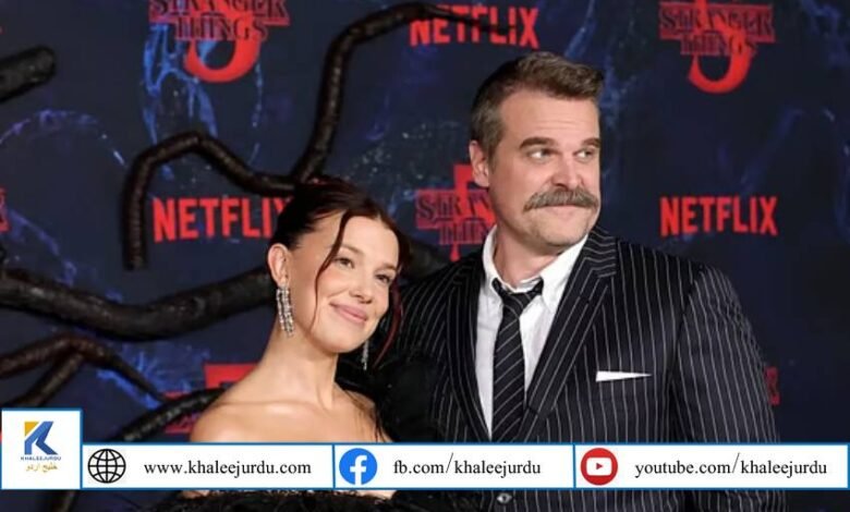 لاس اینجلس: نیٹ فلکس کی مقبول سیریز "اسٹرینجر تھنگز” کے پانچویں اور آخری سیزن کی ریڈ کارپٹ تقریب میں اداکارہ ملی بو بی براؤن اور ڈیوڈ ہاربر کے درمیان خوشگوار لمحات نے ان افواہوں کو ختم کر دیا جن میں دعویٰ کیا گیا تھا کہ دونوں کے درمیان شو کے سیٹ پر تنازعہ ہوا تھا۔