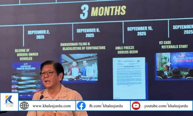 صدر مارکوس نے مالاکانانگ میں صحافیوں کے سوالات کے جواب دیتے ہوئے حالیہ سیلاب کنٹرول منصوبوں میں بدعنوانی کی تحقیقات کی تازہ رپورٹ بھی شیئر کی۔ انہوں نے زور دیا کہ بڑے بدعنوانی کے سکینڈلز — خاص طور پر سیلاب کنٹرول اور انفراسٹرکچر کے ٹھیکوں میں ملوث افراد کے خلاف جلد ہی قانونی کارروائی کی جائے گی۔