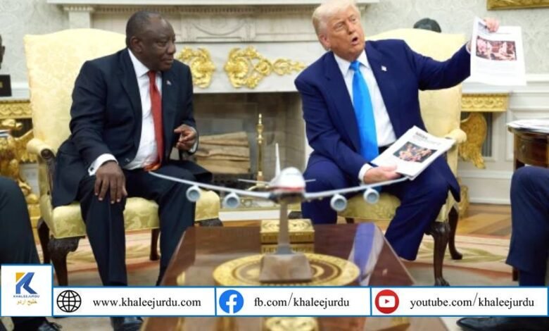 امریکی صدر ڈونلڈ ٹرمپ اور جنوبی افریقہ کے صدر سیرل رامافوسا کے درمیان وائٹ ہاؤس میں ہونے والی ملاقات اس وقت کشیدہ صورت اختیار کر گئی جب ٹرمپ نے جنوبی افریقہ میں مبینہ سفید فام نسل کشی پر تصاویر اور ویڈیوز دکھاتے ہوئے سوالات اٹھائے۔
